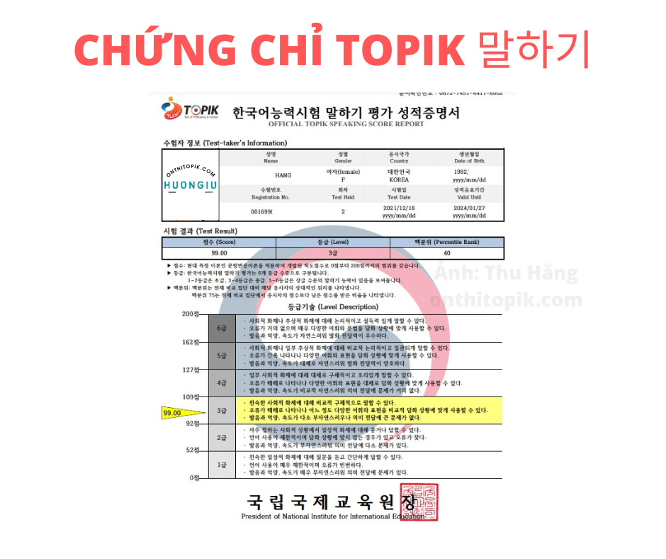 TOPIK II: 3 kỹ năng (Nghe – Viết – Đọc), tổng 300 điểm.