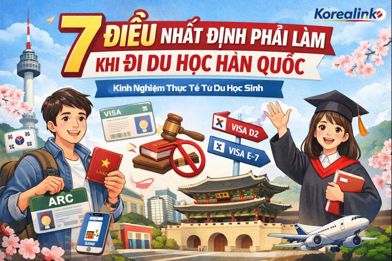 7 điều bắt buộc phải làm khi đi du học Hàn Quốc giúp tránh rủi ro visa, học tập và làm thêm. Kinh nghiệm thực tế từ Du học Korealink.