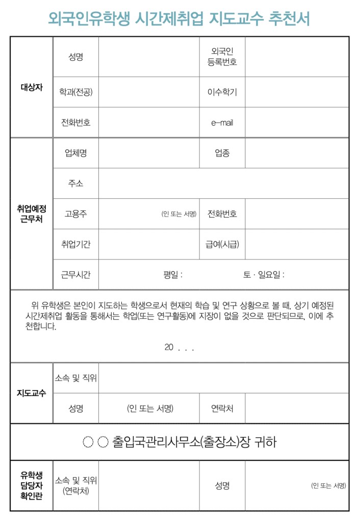 Giấy phép làm thêm (허가서) là văn bản do Cục Xuất Nhập Cảnh Hàn Quốc cấp, cho phép du học sinh nước ngoài được đi làm thêm hợp pháp trong thời gian học tập tại Hàn Quốc.