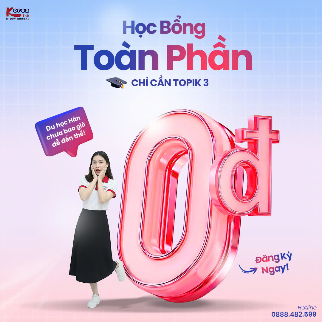 - Trường có học bổng: bắt buộc TOPIK 3+