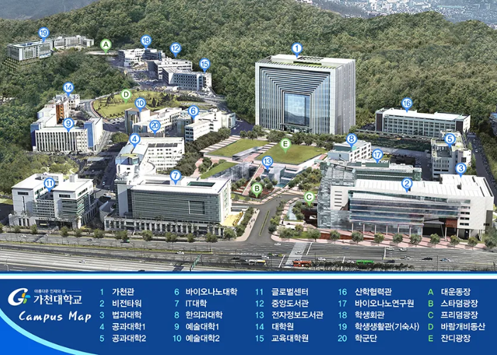 Gachon University tọa lạc tại thành phố Seongnam, tỉnh Gyeonggi-do, chỉ cách Seoul khoảng 30 phút di chuyển. Đây là khu vực phát triển mạnh về giáo dục, kinh tế và công nghệ, mở ra nhiều cơ hội việc làm thêm và thực tập cho sinh viên quốc tế.