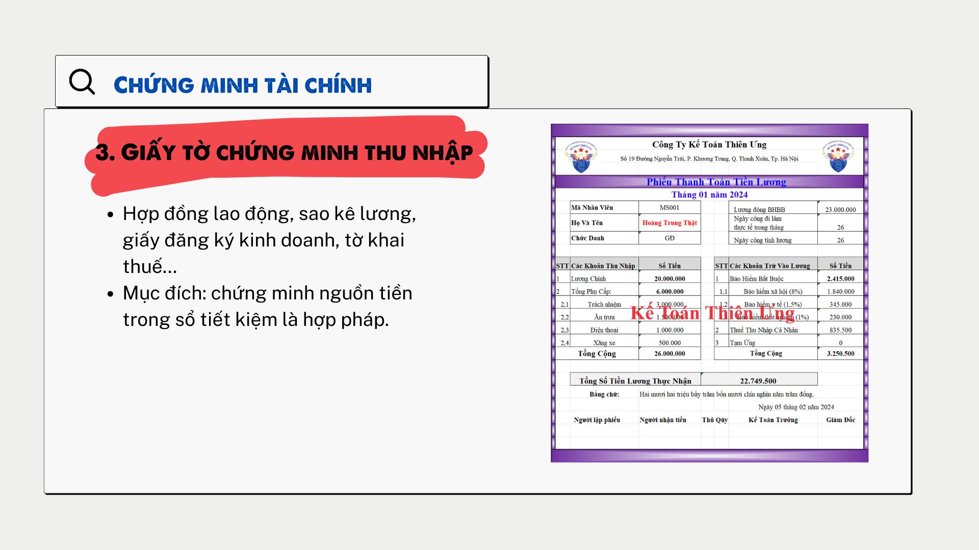- Chuẩn bị hồ sơ thu nhập đúng cách để hợp thức hóa nguồn tiền.
